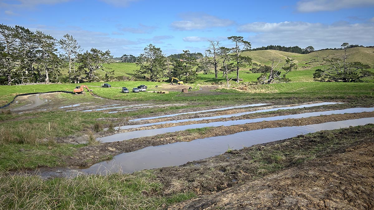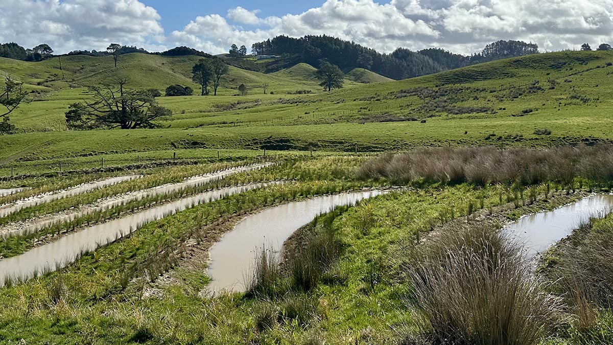 The site has naturally poorly drained soils, hence the bunds detain surface runoff, sub-soil discharges, and any perched water spring discharges, which subsequently seep slowly into the ground. Bordered by native hydrophytic vegetation planting, they create a sustained saturated environment emulating the natural wetlands on lower sloped land or at springs in gully heads.